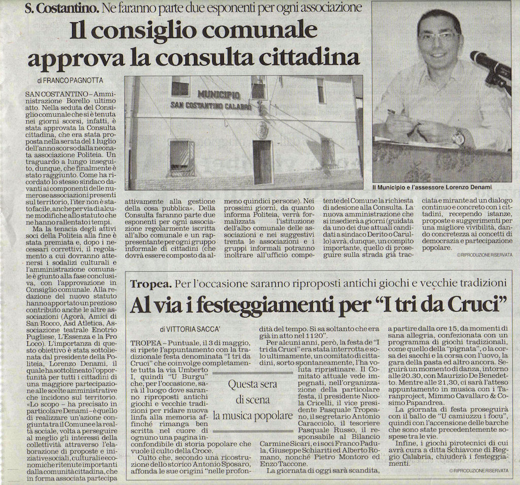 30 aprile 2012 – Alla presenza delle ormai numerose associazioni del paese si è riunito l’ultimo consiglio comunale dell’amministrazione Borello che, con notevole ritardo rispetto a quanto promesso, ha finalmente approvato la consulta cittadina da noi proposta durante la serata di presentazione alla comunità, svoltasi il primo luglio dello scorso anno. Come lo stesso sindaco […]